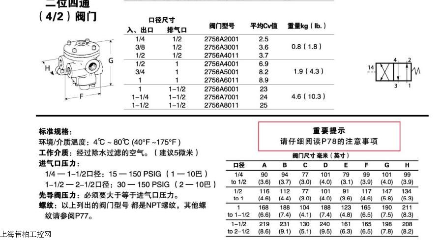 ROSS气动先导式电磁阀 1/4;1/2; 2776B2003;2.5 型号|规格|参数-中国伟柏商务