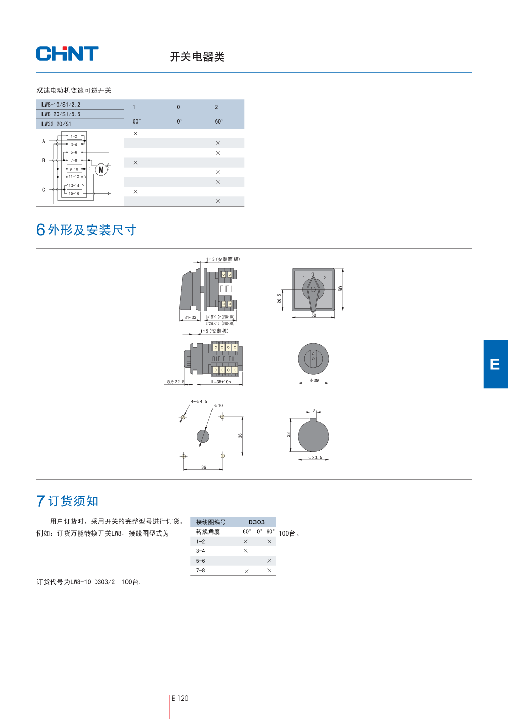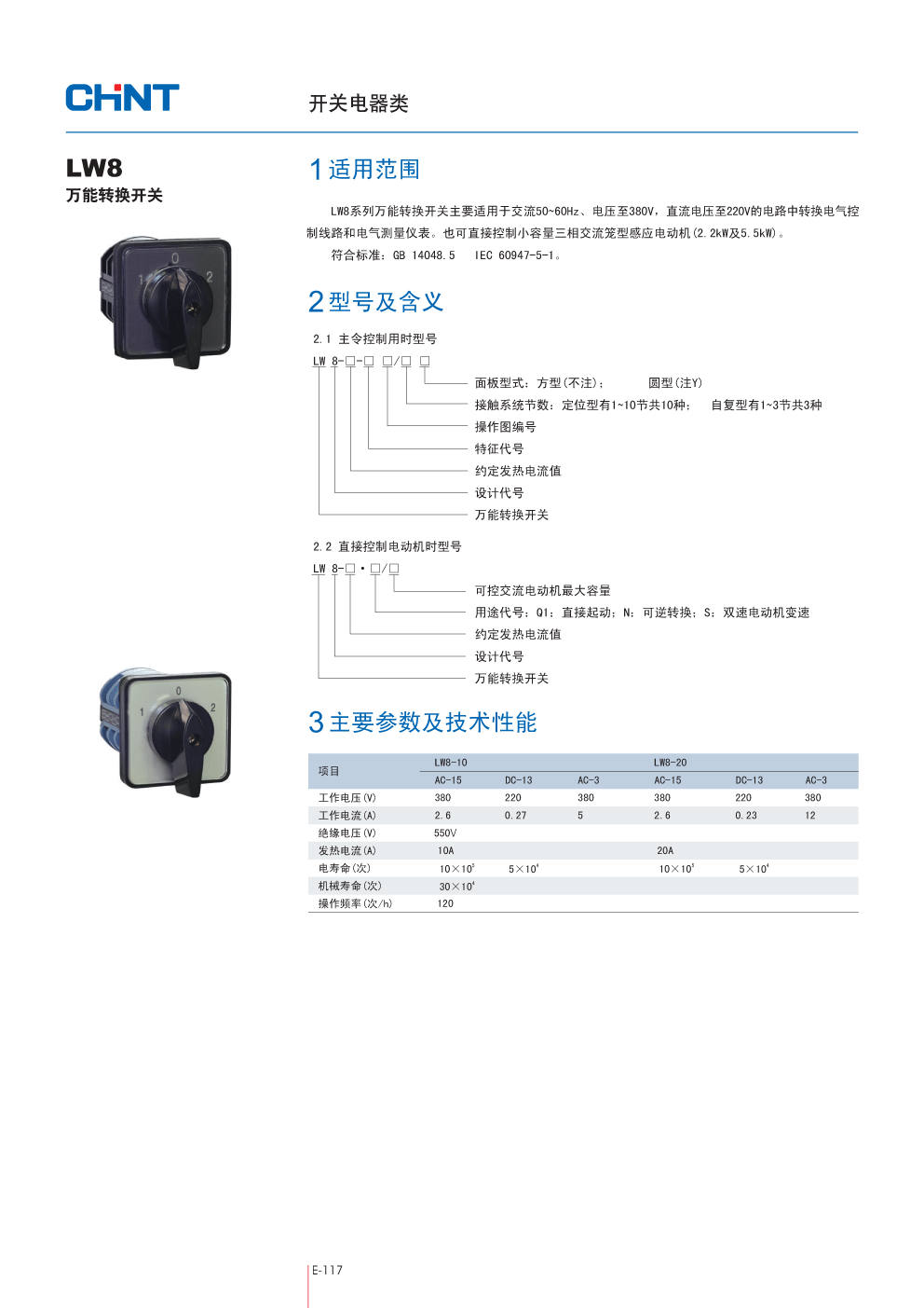 LW8-10/3 H2033,LW8系列万能转换开关,CHINT正泰代理