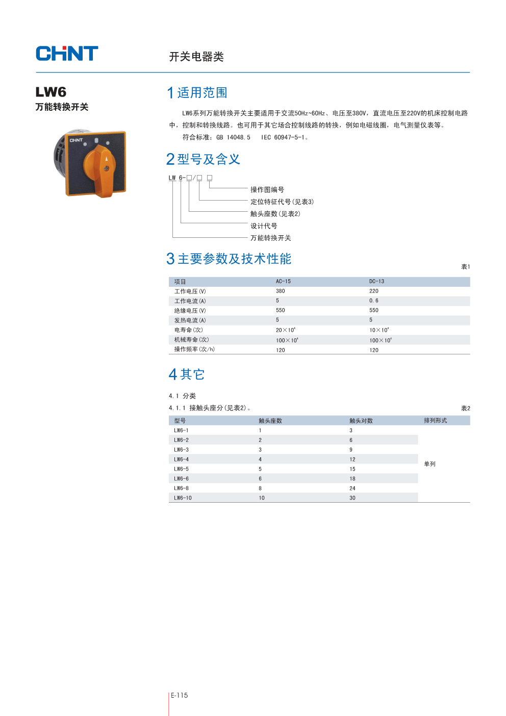 主要适用于交流50~60Hz、电压至380V,直流电压至220V的机床控制电路中,控制和转换线路。也可用于其它场合控制线路的转换,例如电磁线圈,电气测量仪表等。符合标准:GB 14048.5 IEC 60947-5-1